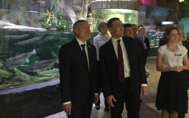 Во время осмотра ТРЦ Евгений Николаевич Хамин особое внимание уделил гордости Воронежской области - океанариуму.