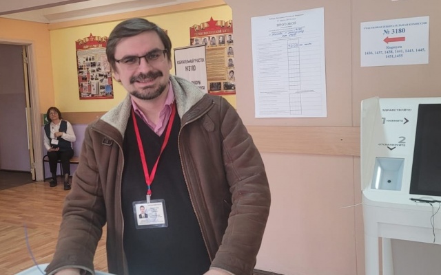 Председатель КРК регионального отделения партии "РОДИНА" в Москве Евгений Вахмистров и лидер молодежного центра партии Екатерина Татаринова проголосовали на выборах Президента России.