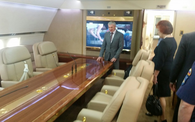 Утром Журавлёв с коллегами осмотрели площадку для строительства центра кастомизации и поставки самолётов с VIP-интерьерами на территории воронежского аэропорта.