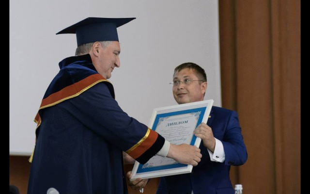 Также сегодня Дмитрий Рогозин и Алексей Журавлёв встретились с преподавателями и студентами Воронежского государственного унивеситета. Руководство вуза вручило вице-премьеру мантию и диплом почётного доктора ВГУ.
