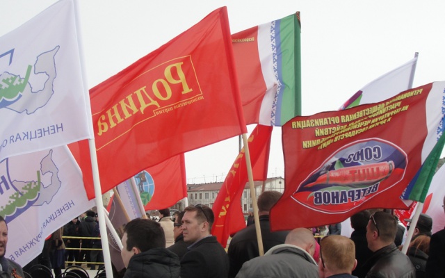 8 мая, в 10 часов утра колонна из 17 автомобилей, украшенная победной символикой, логотипами и флагами партии "РОДИНА", НРО ВОО ветеранов "Боевое братство", РОО ветеранов "ЩИТ" стартовала от памятника экипажу буксира "Комсомолец" у здания администрации Морского порта и проследовала по маршруту: город Нарьян-Мар – рабочий посёлок Искателей. Встречные автомобилисты приветствовали колонну сигналами и светом фар, прохожие махали руками.