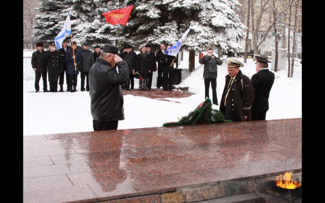 19 марта по традиции "Морское собрание Челябинской области" возлагает цветы к вечному огню в Металлургическом районе областного центра потому, что именно здесь в гимназии № 96 – единственный на Урале музей истории подводного флота России. Здесь в этот мартовский день все капитаны и ветераны флота проводят уроки мужества и смотрят концерт гимназистов.