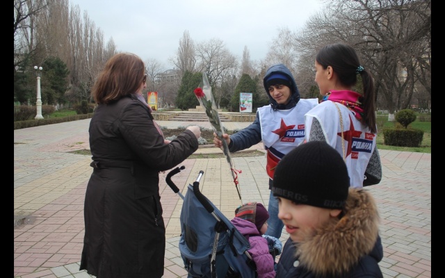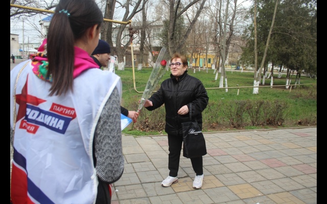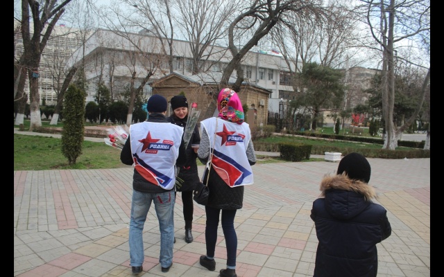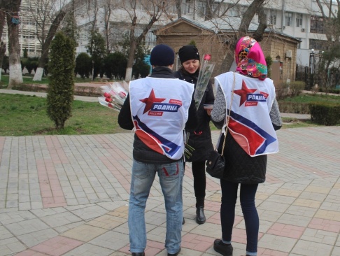 Необычную и красивую поздравительную акцию провели члены регионального отделения "РОДИНА" в Республике Дагестан в честь Международного женского дня. Активисты поздравляли женщин прямо на улицах, в парках, скверах, детских площадках Махачкалы и на главной площади города.