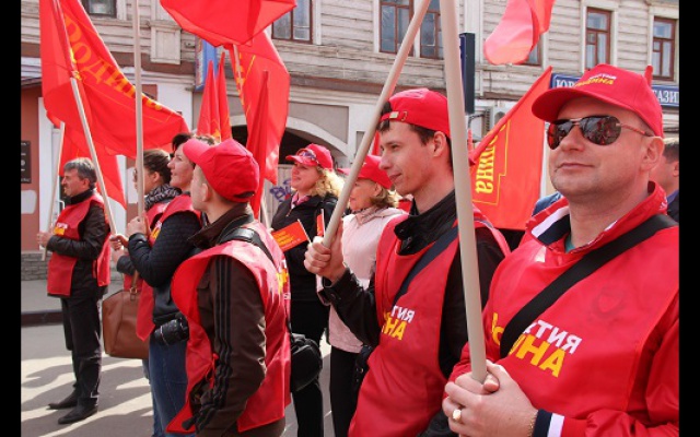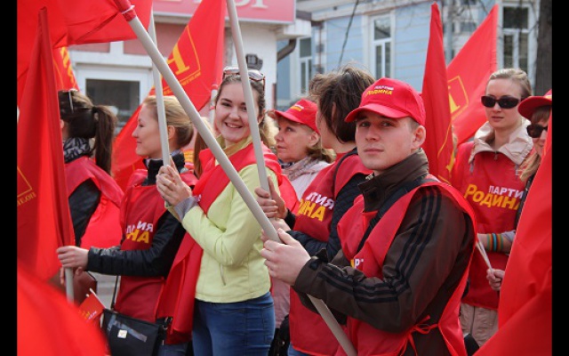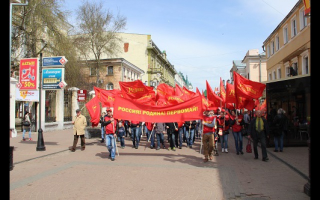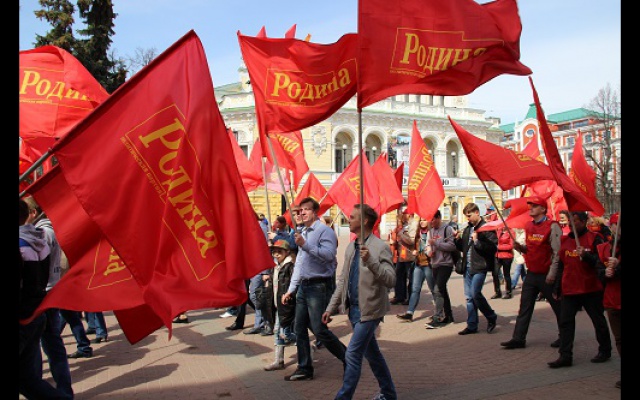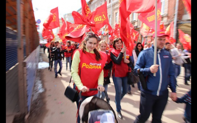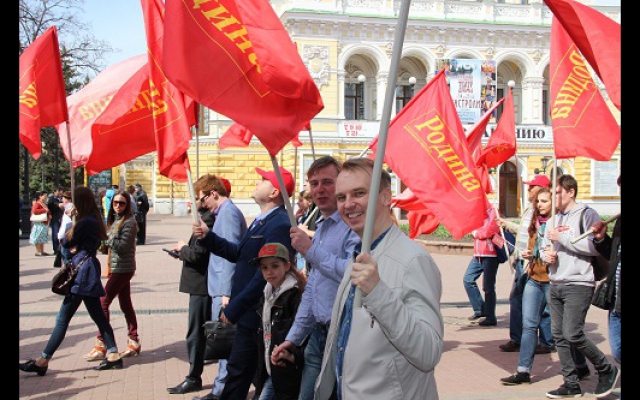 День весны и труда активисты нижегородского регионального отделения Всероссийской политической партии "РОДИНА" отпраздновали праздничной демонстрацией. Более ста членов партии вместе с семьями прошли организованной колонной по главной пешеходной улице города Большой Покровской. Под радостные возгласы "Россия! Родина! Победа!" демонстранты промаршировали под красными партийными знаменами и транспарантами от площади Минина и Пожарского до площади Горького, раздавая прохожим красные флажки.