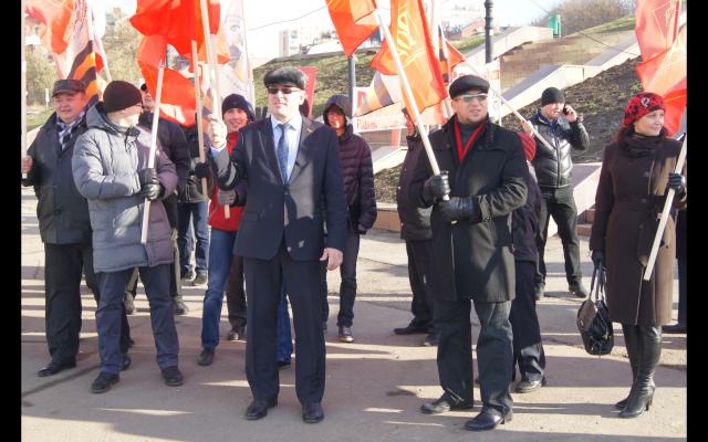 Виктор Диц, член партии, председатель Национально-культурной автономии немцев в Татарстане, тоже поздравил митингующих с праздником и обратил внимание на то, что сегодня вступают в должность избранная 2 ноября власть в Новороссии, поэтому этот день можно также считать днем рождения нового государства - Новороссии.
