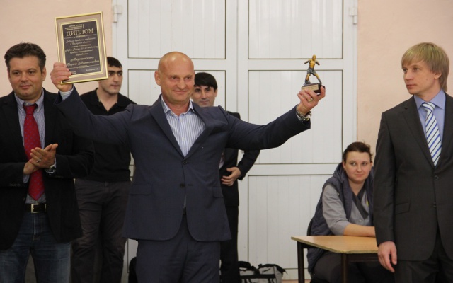 Памятный кубок и диплом за большой вклад в развитие кикбоксинга вручил Сергею Мирошниченко старший тренер Федерации кикбоксинга России, судья международного класса Андрей Котов.