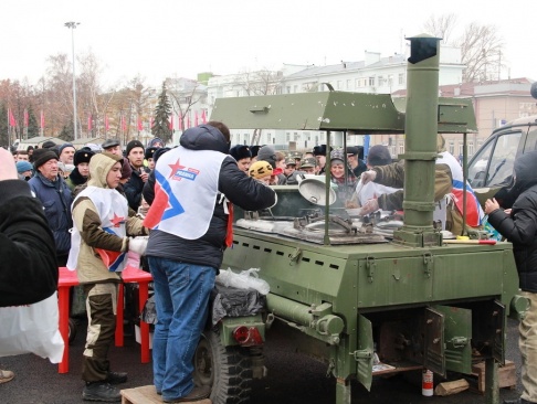 Ранним утром, задолго до начала торжественных мероприятий, на площади Куйбышева была дислоцирована полевая кухня "РОДИНЫ". Представители Самарского регионального отделения партии угощали участников и гостей Парада Памяти горячей армейской кашей и крепким сладким чаем.