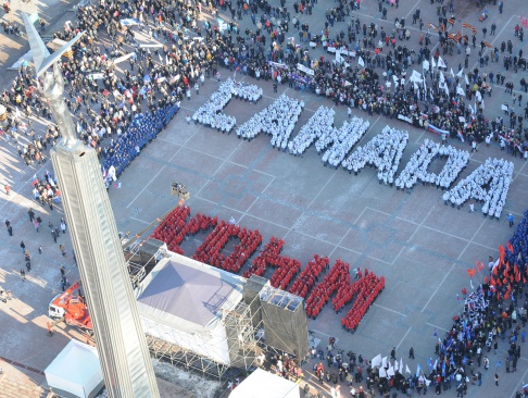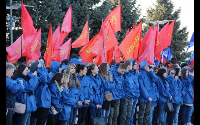 Во флэш-мобе и митинге-концерте, организованном по инициативе Самарского Союза молодёжи, участвовали общественные объединения и политические партии, профессиональные вокальные и танцевальные коллективы губернии, студенты высших и профессионально-технических учреждений, депутаты, руководство города и области во главе губернатором. Тысячи людей пришли на центральную площадь города, чтобы выразить единение с жителями Крымского полуострова.