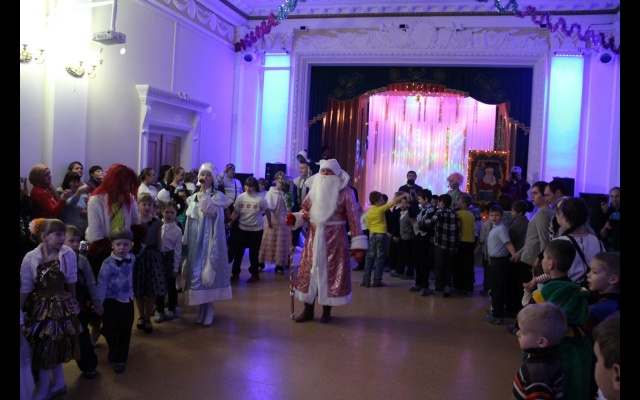 Во Дворце культуры "Заря" Самарское региональное отделение партии "РОДИНА" и Администрация Советского района областного центра организовали и провели большой новогодний театрализованный утренник для самарских детей дошкольного и школьного возраста.