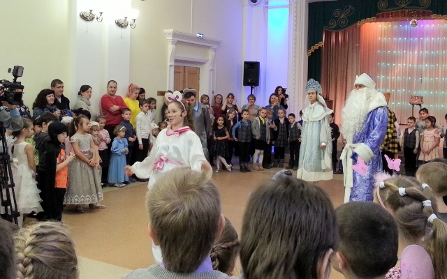 Перед началом театрализованного представления у большой нарядной елки в фойе Дома культуры "Заря" выступили артисты и аниматоры с разнообразной музыкальной и танцевальной программой. Творческие коллективы Дома культуры подготовили для ребят новогоднюю дискотеку и игротеку, веселые хороводы с участием Деда Мороза, Снегурочки и сказочных персонажей.