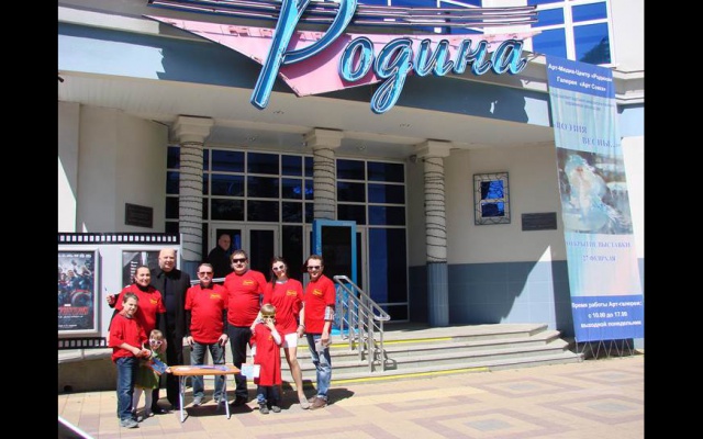 Сочинцы провели акцию "Нерушимый Союз" на площади у кинотеатра "Родина". Всем, подписавшим поздравительные открытки вручались футболки с символикой партии "РОДИНА".