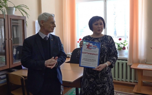 В гости к ребятам приехали руководитель регионального отделения партии Виктор Уланов и лидер можгинского отделения партии Павел Белинов. Приехали, как водится, не с пустыми руками. По просьбе руководства школы была приобретена очень нужная для обучения передвижная магнитно-маркерная доска, а также сертификат на мебель для коррекционного класса. Как сказал руководитель можгинских родинцев Павел Белинов, после обращения не возникло даже тени сомнения в том, что надо помочь.