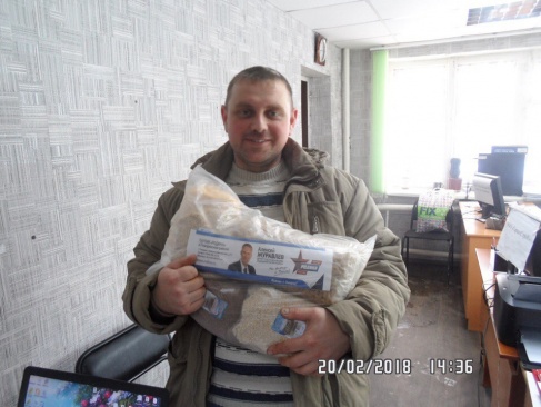 В Поворино соратники партии "РОДИНА" в рамках программы председателя партии, депутата Госдумы Алексея Журавлева "Помощь и доверие", продолжают раздачу продовольственных наборов для горожан. Мероприятие проводилось накануне 23 февраля и было приурочено к Дню защитника Отечества.