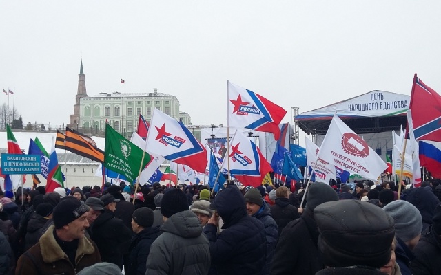 4 ноября в Казани прошел митинг-концерт "Мы вместе", посвященный Дню народного единства. В нем приняли участие 7,5 тыс. человек. По словам организаторов мероприятия, в акции приняли участие представители 170 национальностей, проживающих в Татарстане. На Кремлевской набережной напротив сквера Дворца земледельцев выступили лучшие творческие коллективы.