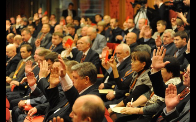 После доклада Алексея Рылеева делегаты съезда единогласно проголосовали за создание Всероссийской политической партии "РОДИНА".